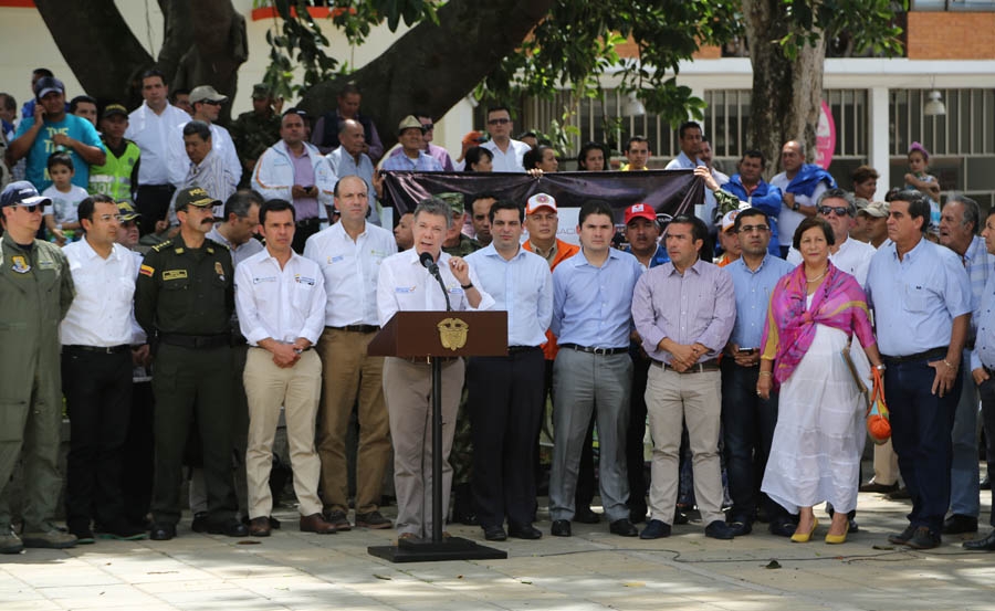 El Presidente Santos recordó que los niveles de los ríos, como por ejemplo el Magdalena, están bajando considerablemente, y que en la actualidad hay 238 municipios con racionamiento de agua, 34 de ellos en el departamento de Cundinamarca. Dijo que hay más de 650 planes de emergencia y contingencia activados, y resaltó lo que se ha hecho para apoyar esta emergencia.