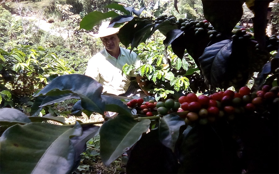 Entre los cafetos de Santa María, don Ángel nació hace 55 años y lleva toda una vida en la caficultura pues desde muy chico le cogió amor a una labor compleja que ha dado muchas cosas buenas, amén de las cosas malas que en ocasiones recibe a cambio.